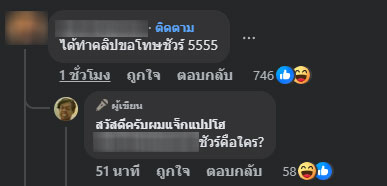 และชาวเน็ตอีกรายได้คอมเมนต์ว่า “ได้ทำคลิปขอโทษชัวร์ 5555” แจ็กแปปโฮก็สวนกลับทันทีว่า “ชัวร์คือใคร?”