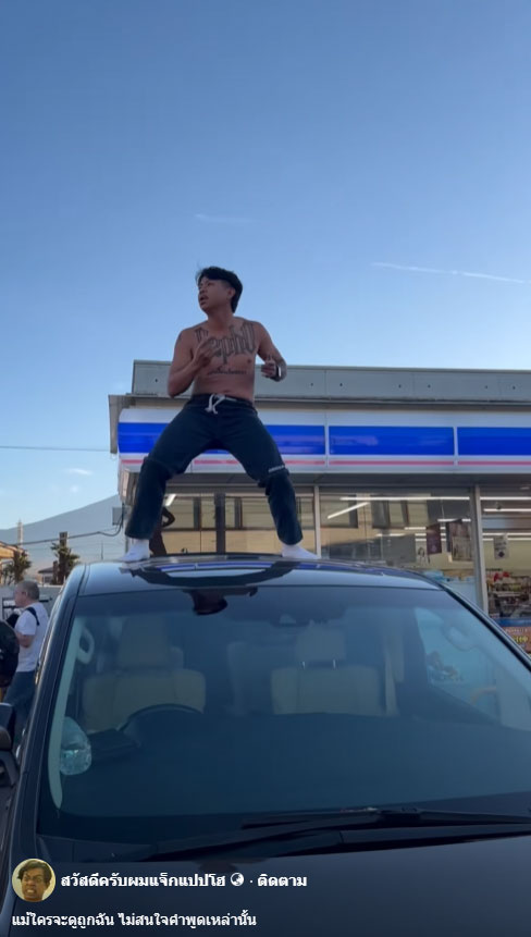 17 พฤศจิกายน 2568 กลายเป็นประเด็นร้อนบนโซเชียลไทย เมื่อ "แจ็กแปปโฮ" อินฟลูเอนเซอร์และยูทูบเบอร์ชื่อดัง โพสต์คลิปตัวเองถอดเสื้อและขึ้นไปยืนเต้นบนหลังคารถ บริเวณด้านหน้าร้านสะดวกซื้อ Lawson ที่มีวิวภูเขาไฟฟูจิ ระหว่างเดินทางท่องเที่ยวประเทศญี่ปุ่น พร้อมใส่ข้อความประกอบว่า “แม้ใครจะดูถูกฉัน ไม่สนใจคำพูดเหล่านั้น”