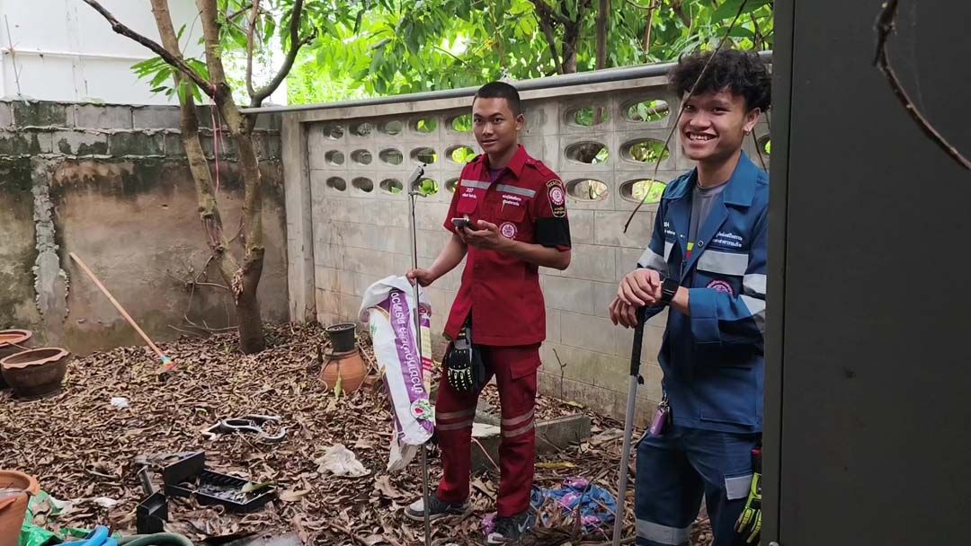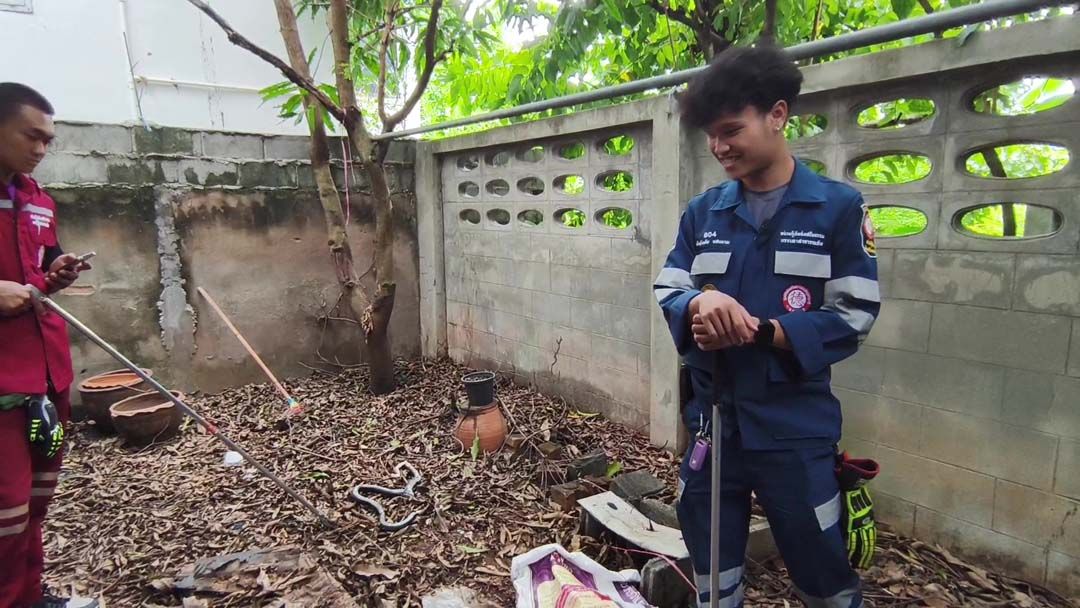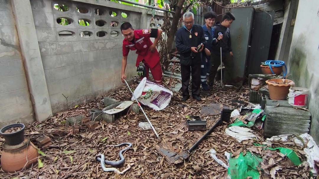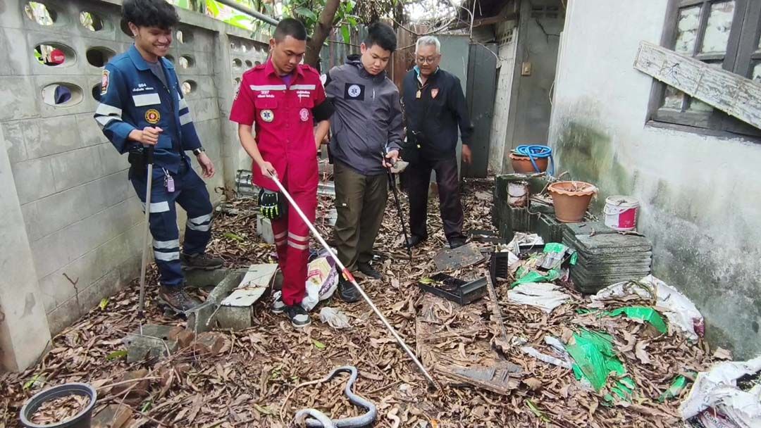 หลังรับแจ้งเจ้าหน้าที่กู้ภัยได้จัดทีมลงพื้นที่ทันที เมื่อไปถึงพบนายยศ อายุ 31 ปี ลูกจ้างเจ้าของบ้าน ยืนรอเพื่อพาไปชี้จุดเกิดเหตุบริเวณหลังบ้าน ซึ่งเป็นบ้านที่ไม่มีผู้อาศัย ใช้สำหรับเก็บของและจอดรถเท่านั้น