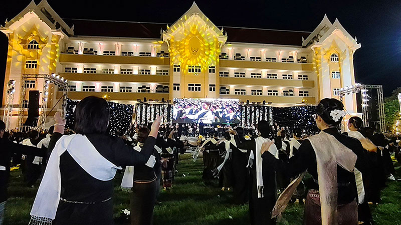 จากนั้น นางรำกว่า 6,000 ชีวิต-6,000 ดวงใจ ได้ร่วมกันรำถวายความอาลัยแด่พระพันปีหลวงอย่างอ่อนช้อย สง่างาม และพร้อมเพรียง และรำเฉลิมฉลองจังหวัดศรีสะเกษ ครบ 243 ปี ก่อนที่ประชาชนทั้งมวลจะร่วมกัน จุดเทียนสว่างไสวทั่วทั้งลานสนาม สะท้อนถึงความจงรักภักดีและความสามัคคีของชาวศรีสะเกษที่รวมพลังแสดงความกตัญญูต่อพระองค์