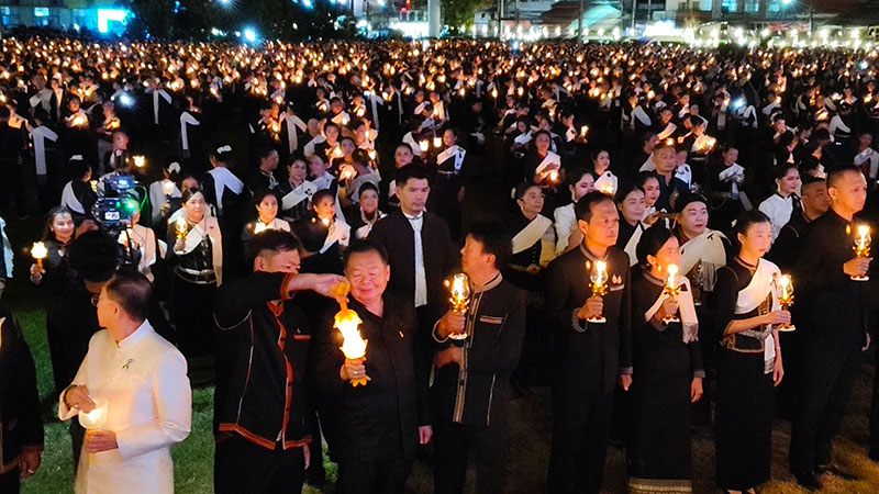 ศรีสะเกษน้อมใจทั้งจังหวัด “ร้อยดวงใจ ถวายอาลัย แด่พระพันปีหลวง” แสงเทียน 6พันดวงใจสว่างไสวกลางสนามศาลากลาง ในงานครบรอบ 243 ปี จังหวัดศรีสะเกษ