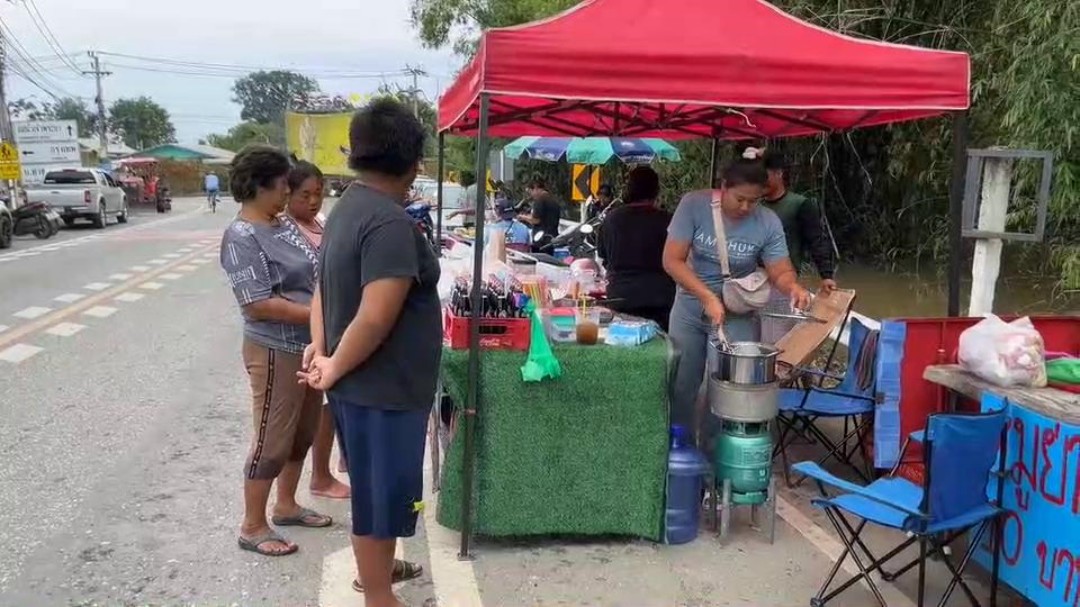 วิกฤตสร้างตลาด! ‘ชาวบ้านเกาะเทโพ’พลิกวิถี ตั้งชุมชนค้าขายชั่วคราวริมถนน หลังน้ำท่วมหนักนานนับเดือน