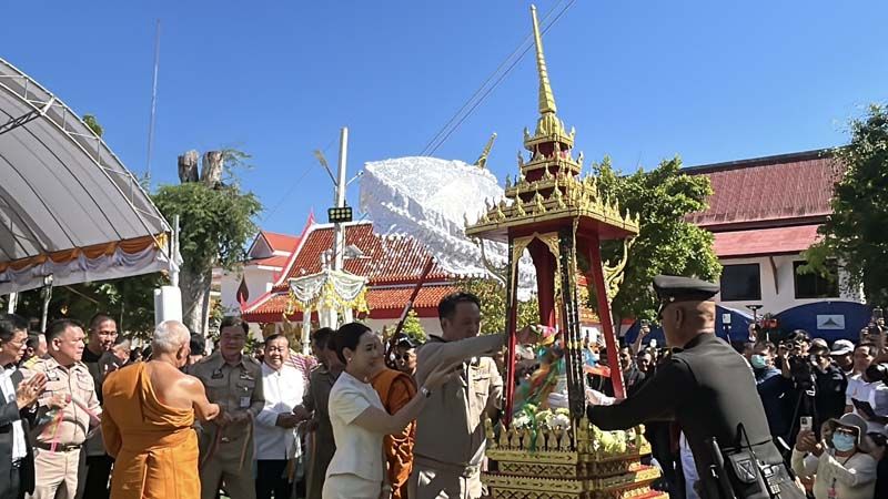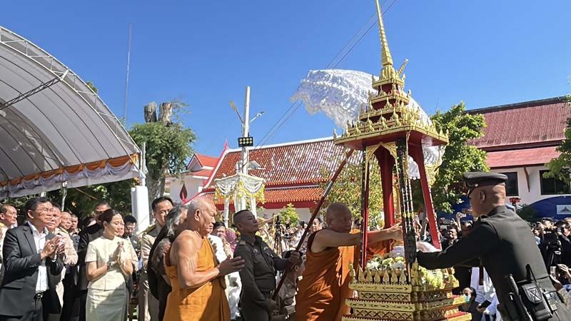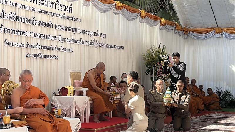 ‘สมเด็จพระมหาวีรวงศ์’ ปธ.ฝ่ายสงฆ์ ยกยอดฉัตรทองคำพระมหาธาตุแก่นนครฯ ด้านนายกฯ พร้อมภริยา ร่วมพิธีมงคล