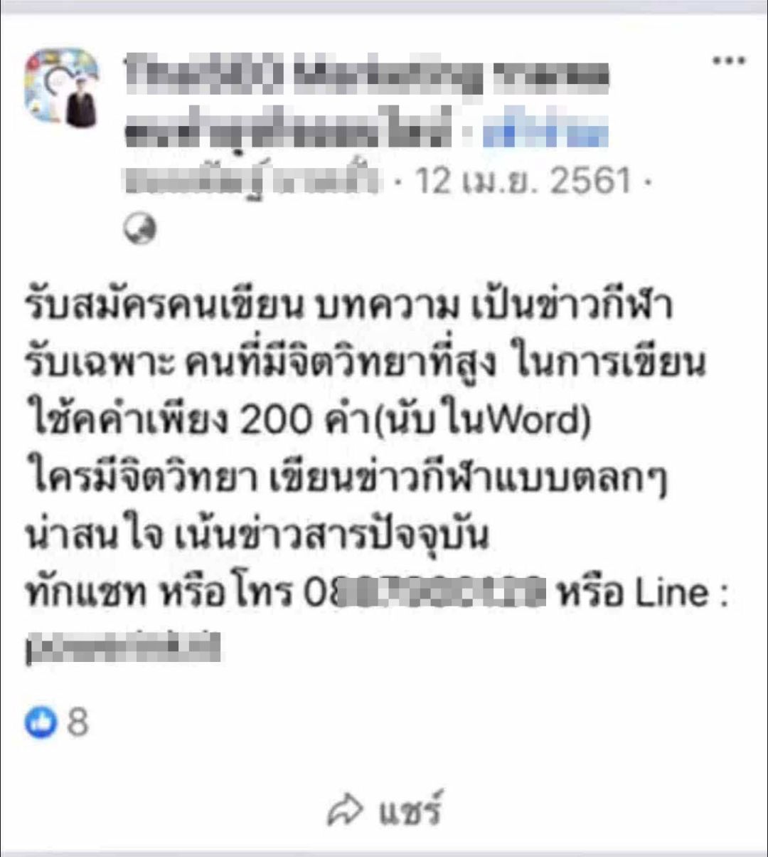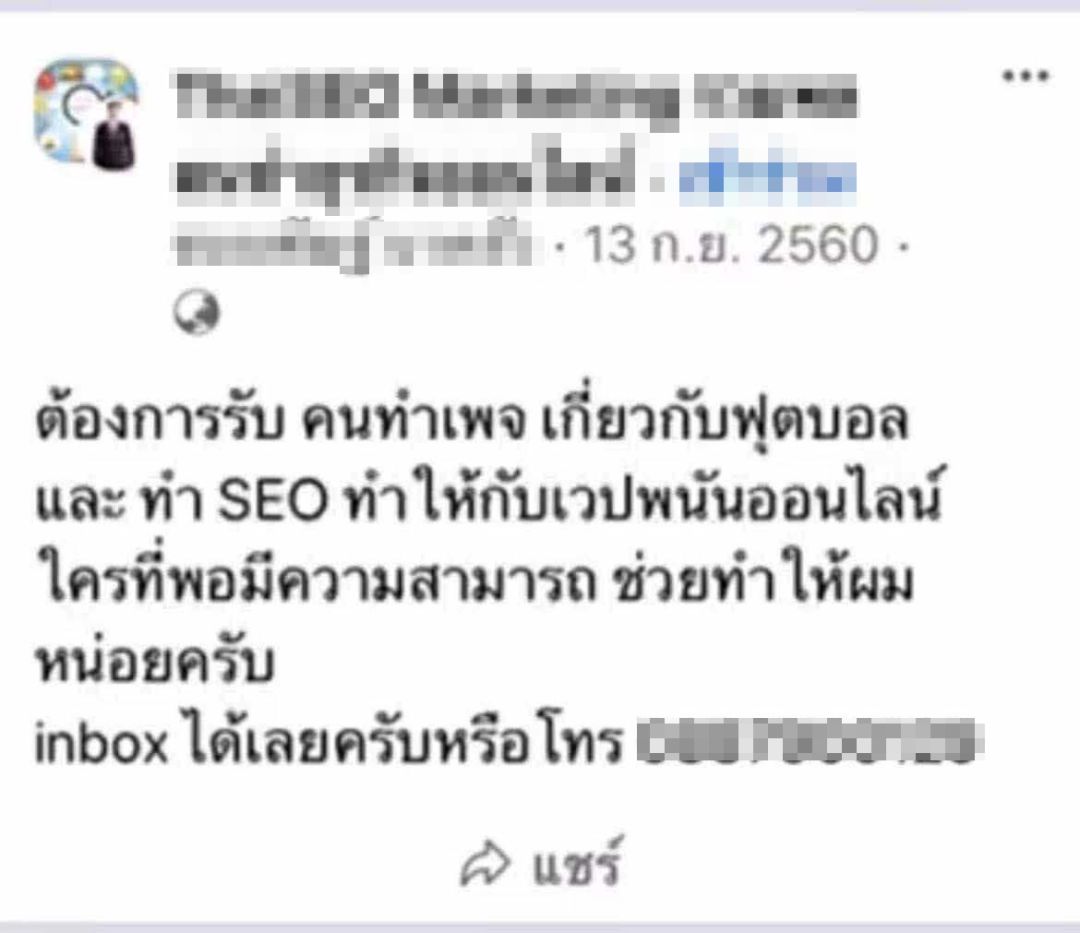 – “รับแอดมินเพจฟุตบอลทำ SEO ให้เว็บพนันออนไลน์”