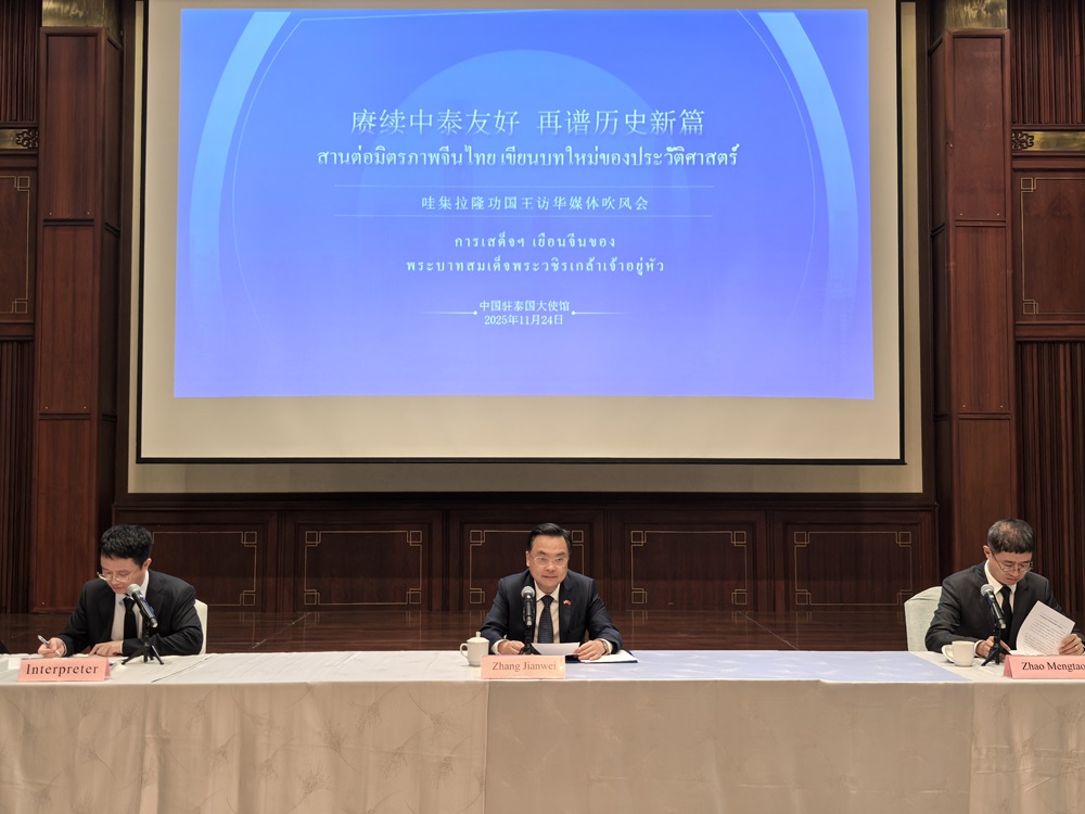 เมื่อวันที่ 24 พฤศจิกายน 2568 ณ สถานเอกอัครราชทูตสาธารณรัฐประชาชนจีนประจำประเทศไทย เอกอัครราชทูตจาง เจี้ยนเว่ย จัดงานแถลงสรุปผลการเสด็จพระราชดำเนินเยือนสาธารณรัฐประชาชนจีนอย่างเป็นทางการของพระบาทสมเด็จพระวชิรเกล้าเจ้าอยู่หัว และสมเด็จพระนางเจ้าสุทิดา พัชรสุธาพิมลลักษณ พระบรมราชินี ระหว่างวันที่ 13–17 พฤศจิกายน 2568 ตามคำทูลเชิญของประธานาธิบดีสี จิ้นผิง โดยก่อนการบรรยายได้มีการฉายวีดิทัศน์การเสด็จฯ เยือนจีนอย่างเป็นทางการประกอบการแถลงข่าว