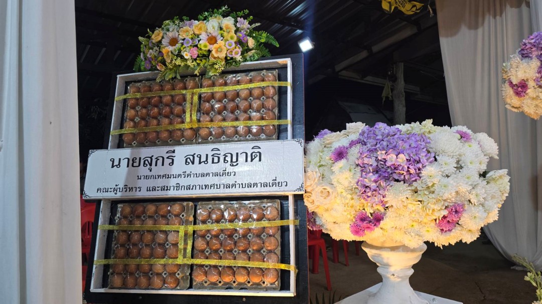 ทต.ตาลเดี่ยว อ.หล่มสัก จ.เพชรบูรณ์ ผุดไอเดีย ‘พวงหรีดไข่ไก่สด’ ใช้ได้จริง แทนดอกไม้-โฟมที่มักกลายเป็นขยะ