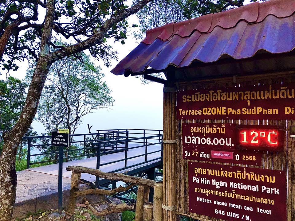 บรรยากาศบริเวณ “ผาสุดแผ่นดิน” เต็มไปด้วยความสดชื่นจาก โอโซนบริสุทธิ์ ที่โอบล้อมระเบียงชมวิว ลานกางเต็นท์ และพื้นที่โดยรอบ ผู้มาเยือนต่างตื่นตาตื่นใจกับทัศนียภาพยามเช้าอันน่าอัศจรรย์ เมื่อพระอาทิตย์ขึ้นเหนือขอบฟ้าเหนือ ทะเลหมอกจาง ๆ ที่ปกคลุมทิวเขา