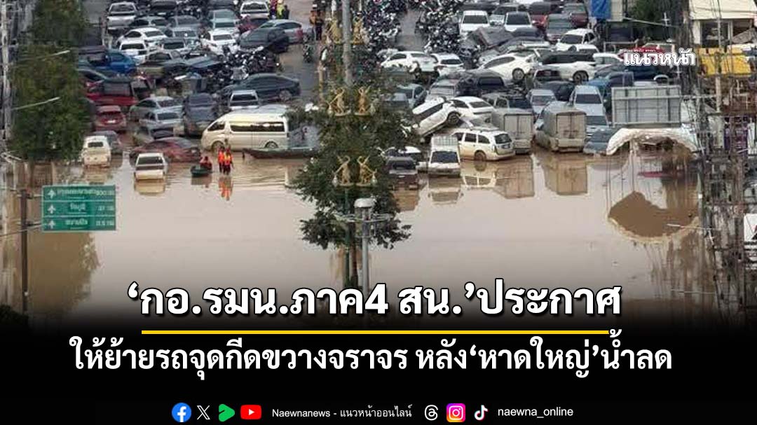 กอ.รมน.ภาค4ส่วนหน้า ประกาศขอปชช.ย้ายรถที่จอดหนีน้ำท่วมพ้นเส้นทางจราจร เหตุขวางทางทำให้เข้าพื้นที่ไม่ได้ ชาวเน็ตฉะ ใช้อะไรคิด!?