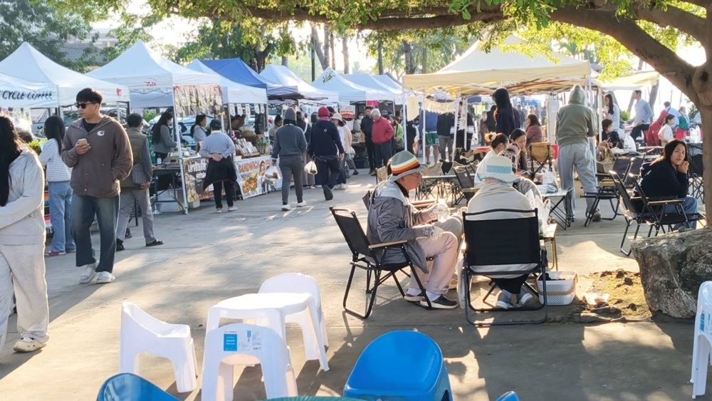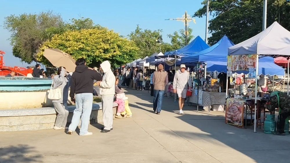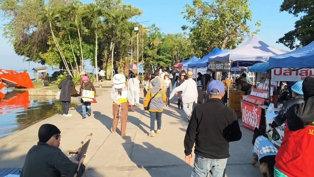 รอบตลาดริมกว๊านบรรยากาศก็ไม่แพ้กัน ชาวบ้านออกมาจับจ่ายซื้ออาหารเช้า ขนมพื้นบ้าน และพืชผักฤดูหนาวกันอย่างคึกคัก ขณะที่พ่อค้าแม่ค้าต่างต้องสวมเสื้อกันหนาว ถุงมือ และหมวกไหมพรม เพราะลมเหนือยังพัดแรงสลับเป็นระยะ นักท่องเที่ยวจากทั้งในและนอกพื้นที่ต่างทยอยเดินทางมา โดยหลายครอบครัวพาเด็ก ๆ มาดูหมอกเหนือน้ำซึ่งถือว่าเป็นภาพหาชมได้ไม่บ่อย