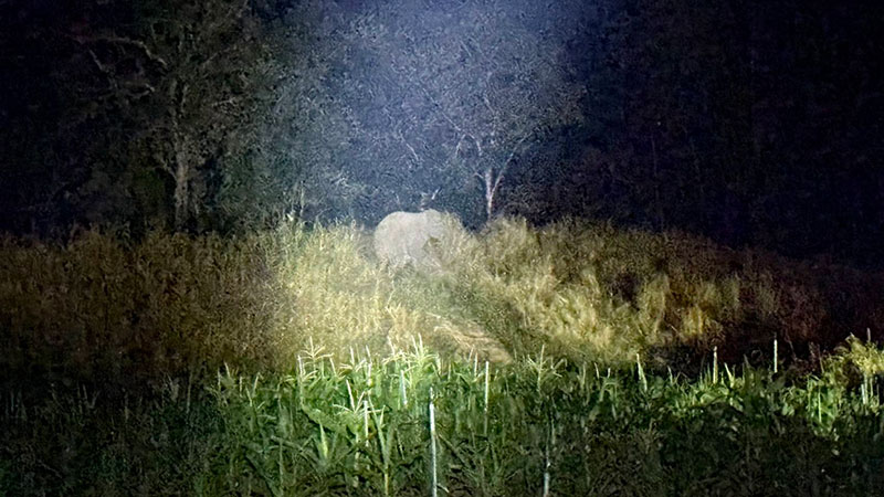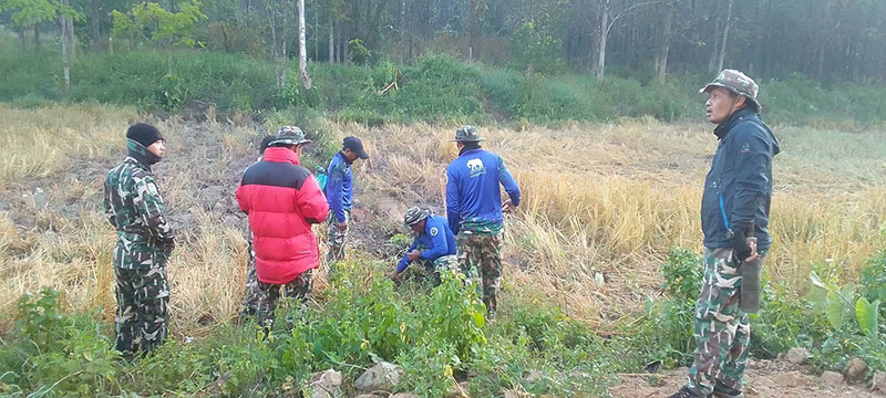 กระทั่งเวลาประมาณ 19.45 น. เจ้าหน้าที่ได้ตรวจพบฝูงช้างป่าจำนวน 15-20 ตัว ออกมาหากินในบริเวณไร่ข้าวโพดของตาธรรม จึงได้ระดมกำลังจากชุดผลักดันช้างป่าร่วมกับเจ้าหน้าที่อุทยานฯ เข้าดำเนินการเฝ้าระวังและผลักดันช้างป่าให้กลับเข้าสู่พื้นที่ป่าตลอดทั้งคืน