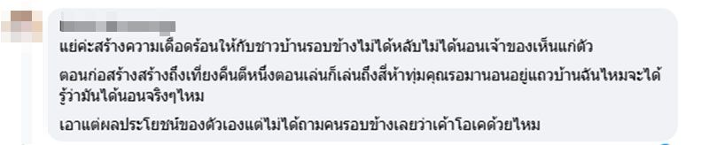 อีกทั้งชาวบ้านที่อาศัยอยู่บริเวณดังกล่าวได้ออกมาโพสต์คลิปผ่านทางช่องทางติ๊กต็อก ให้ได้ยินเสียงของผู้ที่เล่นเครื่องเล่นดังกล่าง พร้อมระบุแคปชั่นว่า "จะบ้าตาย ฟังจนปวดหูไปหมด ถ่ายจากห้องนอน ประเชิญหน้าจังๆ นี่ขนาดปรับให้หมุนช้าลงแล้วหรอ" ซึ่งหลังจากที่ผู้ใช้ติ๊กต็อกได้โพสต์คลิปนี้ออกไปนั้น ก็มีชาวเน็ตเข้ามาแสดงความคิดเห็นเป็นจำนวนมาก ทั้งเห็นด้วยว่าเสียงดังเกินไปจริงๆ และก็มีบางคอมเมนต์ก็ได้บอกว่าไม่ได้ดังรบกวนขนาดนั้น