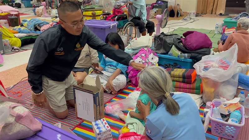 โดยบรรยากาศภายในที่พัก ชาวบ้านหลายคนต่างทำกิจวัตรประจำวัน รับประทานอาหาร อาบน้ำ และพักผ่อน ในขณะเดียวกันชาวบ้านหลายคนบอกสบายใจเพราะเจ้าหน้าที่ภาครัฐให้การดูแลเป็นอย่างดี ถึงแม้ว่าการพักอาศัยอยู่ที่ศูนย์พักพิงจะสบายกว่าอยู่ที่บ้านก็ตาม หลายคนก็อดคิดถึงบ้าน คิดถึงสัตว์เลี้ยงไม่ได้