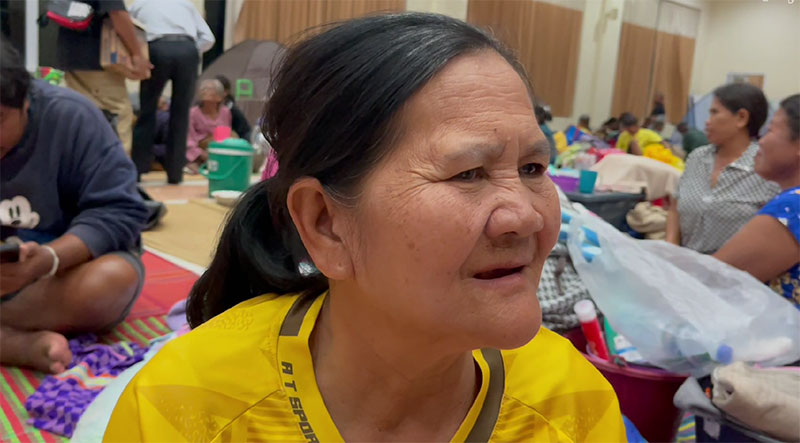 นางสมร อายุ 68 ปี ชาวบ้านที่อพยพ อำเภอพนมดงรัก จังหวัดสุรินทร์ เล่าว่า รอบนี้อยากให้จบเร็วๆขอให้เจ้าหน้าที่ทหารทุกนายปลอดภัย จะปีใหม่จะได้กลับไปฉลองปีใหม่ที่บ้านพร้อมหน้าครอบครัว ถ้าเกิดรอบนี้ไม่จบชาวบ้านรวมถึงป้าก็ต้องเหนื่อย วิ่งเข้าเข้าวิ่งออกศูนย์พักพิงอยู่แบบนี้ เมื่อเช้าอพยพมาตั้งแต่ตี 5 เข้ามาก็ต้องมาตามเขา ตอนนี้รู้สึกคิดถึงบ้านมาก ตอนนี้อยากกลับก็กลับไม่ได้ต้องรอเจ้าหน้าที่ประกาศให้กลับก่อนถึงจะกลับได้