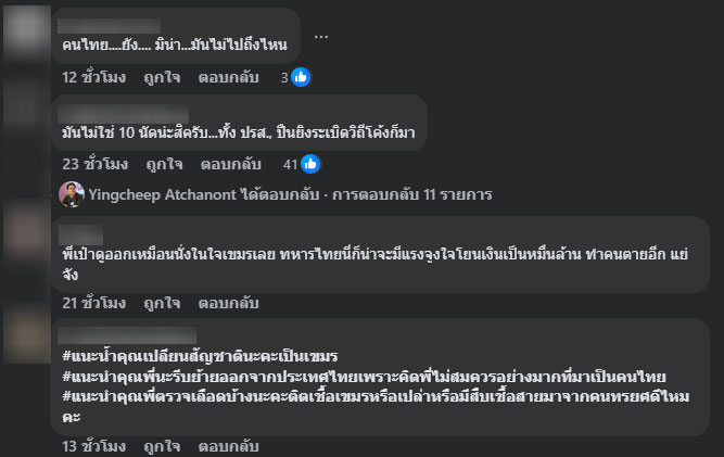 โดยมีทัวร์เข้าคอมเมนต์จำนวนมาก เช่น เขาพูดกันว่า ยุคนี้ คนไทยใจเขมรมีเยอะจริงๆ ..เออว่ะ น่าคิดนะ, แล้วยิงทำแมวไร ตรรกะเพี้ยนอะ ,คิดได้ไงครับ แบบนี้ เป็นต้น