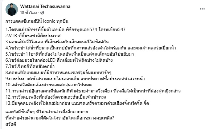 10 ธันวาคม 2568 วรรธนัย เตชะสุวรรณา ช่างภาพชื่อดัง เจ้าของนามปากกา DavidRyo หรือ “David Ryo Photography โพสต์ข้อความแสดงความคิดเห็นเกี่ยวกับพิธีเปิดการแข่งขันกีฬาซีเกมส์ ครั้งที่ 33 ที่ประเทศไทยเป็นเจ้าภาพ ที่สนามราชมังคลากีฬาสถาน ระบุว่า...