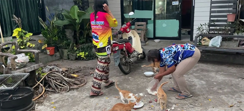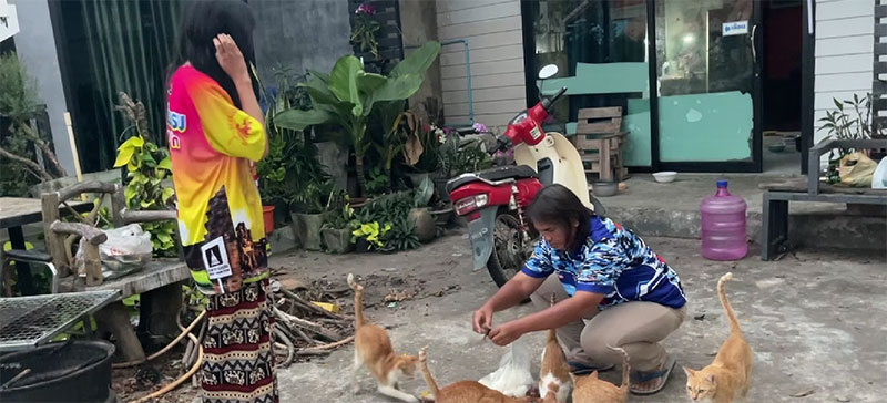 14 ธันวาคม 2568 เมื่อวันที่ 13 ธันวาคม ผู้สื่อข่าวพบชาวบ้านในพื้นที่ตำบลตาเมียง อำเภอพนมดงรัก จังหวัดสุรินทร์ ถือโอกาสช่วงเสียงปืนเบาบางลงในช่วงเย็น นำอาหารเข้ามาให้สัตว์เลี้ยงพร้อมทั้งตรวจเช็คความเรียบร้อยภายในบ้านด้วย โดยบอกว่าจะเข้ามาวันเว้นวันเพื่อนำอาหารให้แมว ที่เลี้ยงไว้ประมาณ 7-8 ตัว หลังให้อาหารเสร็จต้องรีบออกจากพื้นที่ทันที