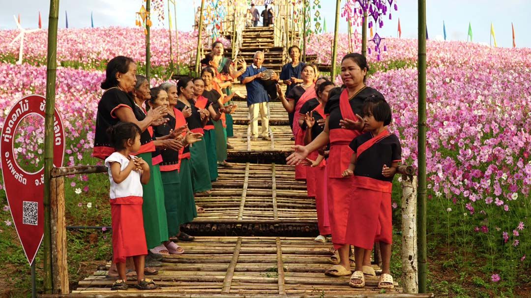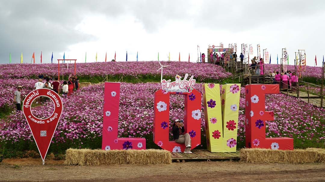 บรรยากาศเป็นไปอย่างคึกคัก นักท่องเที่ยวทั้งในจังหวัดและต่างจังหวัดเดินทางมาถ่ายภาพกับทุ่งดอกคอสมอสที่กำลังบานสะพรั่ง บนพื้นที่กว่า 55 ไร่ บริเวณเทือกเขาพังเหย ความสูงกว่า 854 เมตรจากระดับน้ำทะเลปานกลาง ซึ่งถือเป็นทุ่งดอกคอสมอสขนาดใหญ่ที่สุดแห่งหนึ่งในภาคอีสาน โดยช่วงนี้มีอุณหภูมิเฉลี่ย 12–16 องศาเซลเซียส สร้างเสน่ห์การท่องเที่ยวฤดูหนาวอย่างเต็มรูปแบบ