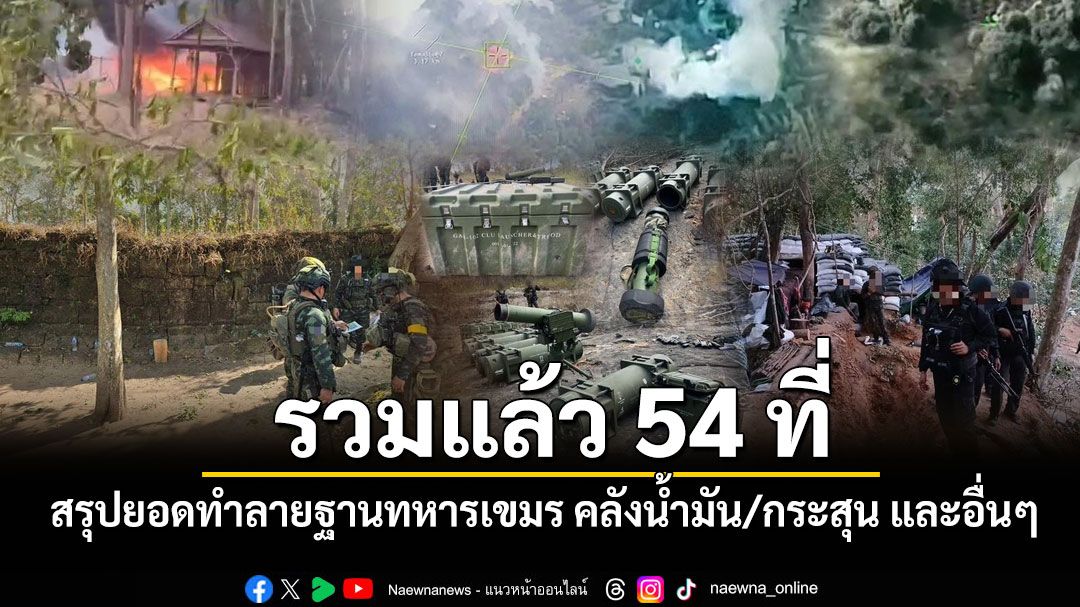 'กองทัพภาค2'เผยยอดทำลายฐานทหารกัมพูชา คลังน้ำมัน/กระสุน และอื่นๆ รวม 54 ที่