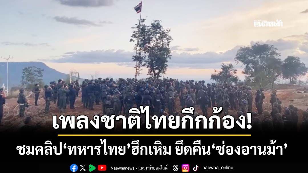16 ธันวาคม 2568 กองทัพบก เปิดคลิปทหารไทยร้องเพลงชาติ ช่องอานม้า อ.น้ำยืน จ.อุบลราชธานี เสียงดังกึกก้อง ภายหลังควบคุมพื้นที่ไว้ได้ทั้งหมด
