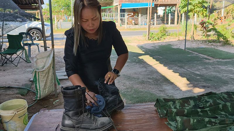 ล่าสุดเช้าวันนี้ (21 ธ.ค.68) ผู้สื่อข่าวได้ลงพื้นที่ไปที่บ้านของพลทหาร ภานุพัฒน์ เสาร์สา หรือ พลทหาร วุ้น คือที่บ้านตาเม็ง ตำบลห้วยติ๊กชู อำเภอภูสิงห์ จังหวัดศรีสะเกษ โดยสภาพบ้านเป็นบ้านไม้ชั้นเดียว สภาพทรุดโทรม พอไปถึงได้พบนางอุไร ทัคเก้อ อายุ 45 ปี คุณป้าของพลทหารวุ้น เป็นตัวแทนพ่อแม่และญาติพี่น้องของ พลทหารวุ้น นำดอกไม้และธูป 9 ดอกมาจุดเพื่อบอกกล่าวสิ่งศักดิ์สิทธิ์พระแม่ธรณี ให้การนำร่างของพลทหารวุ้นกลับบ้านเกิด