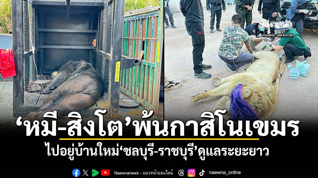 ต่อมา กรมอุทยานฯ ขนย้าย หมี-สิงโต ออกจากกาสิโนชายแดนไทย-กัมพูชา บริเวณบ้านท่าเส้นแล้ว หลังได้รับอาหาร ร่างกายสัตว์ฟื้นตัวและมีเรี่ยวแรงพอจะเดินทาง สัตวแพทย์ดูแลตลอดเส้นทาง คาดถึงสถานีเพาะเลี้ยงสัตว์ป่าในคืนนี้ (24ธ.ค.68)
