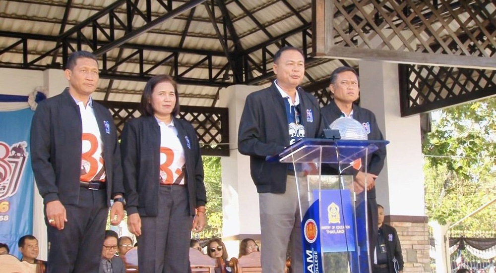 วันที่ 25 ธ.ค. 68 ที่สนามกีฬาวิทยาลัยเทคนิคบุรีรัมย์ บรรยากาศการแข่งขันกีฬาสีภายในประเพณี “อินทนิลเกมส์” ครั้งที่ 87 ประจำปีการศึกษา 2568 เป็นไปอย่างคึกคัก มีนักเรียนนักศึกษาเข้าร่วมกิจกรรมกว่าพันคน โดยนอกจากริ้วขบวนพาเหรดที่สวยงามและการรณรงค์ต้านยาเสพติดแล้ว ไฮไลต์สำคัญที่ทำให้คนทั้งสนามต้องตะลึงคือการโชว์ศักยภาพของ "กำลังพลสำรอง"