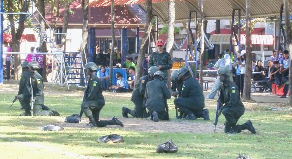 นักศึกษาวิชาทหาร (รด.) ของวิทยาลัยฯ ได้ร่วมกับครูฝึกทหารจากมณฑลทหารบกที่ 26 (มทบ.26) จัดการแสดงจำลองภารกิจการเข้าตีและยึดที่หมายเสมือนจริง ทั้งการคลาน การบุกโจมตี และการวางแผนยุทธวิธีที่เข้มแข็ง ดุดัน เหมือนกับสมรภูมิชายแดนไทย-กัมพูชาที่กำลังเป็นประเด็นร้อนอยู่ในขณะนี้ เพื่อสะท้อนให้เห็นว่าเยาวชนไทยมีความพร้อมและเสียสละเพื่อแผ่นดิน