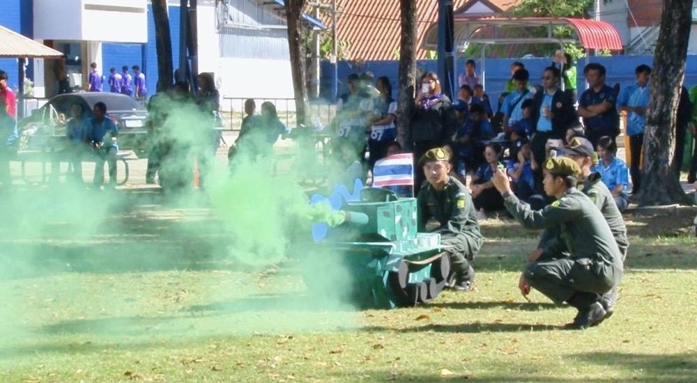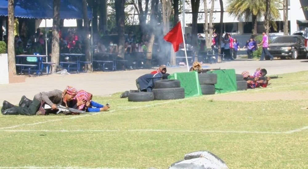 เทคนิคบุรีรัมย์จัดเต็ม! กีฬาสี "อินทนิลเกมส์" ปีที่ 87 สุดฮือฮา ขนทัพนักศึกษาวิชาทหารจับปืนโชว์ยุทธวิธีรบจำลองเข้าตีที่หมายโชว์ความพร้อมกำลังพลสำรอง ผอ.ประกาศก้องกลางสนาม พร้อมหนุนกองทัพทุกเมื่อหากชาติต้องการ ส่งกำลังใจทหารชายแดนปฏิบัติหน้าที่ปกป้องไทย