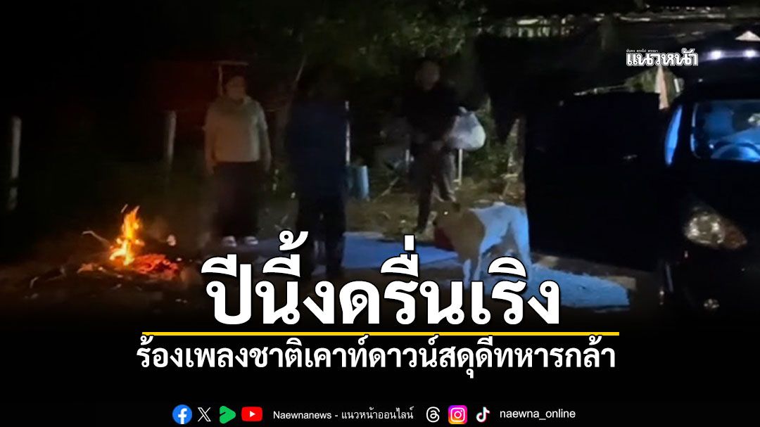 ต่อมาเวลา 24.00 น. ชาวบ้านทุกคนต่างยืนสงบนิ่งพร้อมกับเปิดเพลงชาติ และยืนตรงพร้อมกับร้องเพลงชาติในคืนวันเคาท์ดาวน์ เสียงเพลงชาติได้ดังก้องกังวานไปทั่วบริเวณทั่วทุกสารทิศ เพื่อเป็นการสดุดีให้กับผู้กล้าที่พลีชีพปกป้องพื้นแผ่นดินอธิปไตยไทย นับว่าเป็นครั้งแรกที่มีการเปิดเพลงชาติส่งท้ายปีเก่าต้อนรับปีใหม่