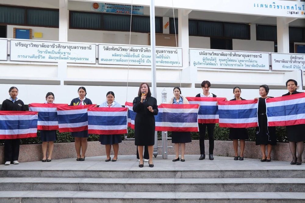 วันที่ 6 มกราคม 2569 นายอาคม ศรีพรม รองผู้อำนวยการฝ่ายบริหารทรัพยากร รักษาการในตำแหน่งผู้อำนวยการวิทยาลัยอาชีวศึกษาอุบลราชธานี นางศรีอุดร ศิริปริญญานันท์ รองผู้อำนวยการฝ่ายแผนงานและความร่วมมือ นำคณะครู บุคลากร และนักเรียน นักศึกษา รวมพลัง แสดงสัญลักษณ์รูปหัวใจ สัญลักษณ์ฝีมือชน คนสร้างชาติ และชูกำปั้นสัญลักษณ์ สู้ๆ “ส่งใจไปฮาร์บิน” เพื่อเป็นกำลังใจให้แก่ทีมแกะสลักหิมะนานาชาติ วิทยาลัยอาชีวศึกษาอุบลราชธานี และทีมจากสถานศึกษา สังกัดสำนักงานคณะกรรมการการอาชีวศึกษา กระทรวงศึกษาธิการที่เข้าร่วมแข่งขัน ในนามตัวแทนประเทศไทย ร่วมการแข่งขันแกะสลักหิมะนานาชาติ ประจำปี พ.ศ. 2569 กำหนดเดินทางระหว่างวันที่ 1–9 มกราคม พ.ศ. 2569 และกำหนดแข่งขันในระหว่างวันที่ 4-7 มกราคม 2569 ณ เมืองฮาร์บิน มณฑลเฮย์หลงเจียง ประเทศสาธารณรัฐประชาชนจีน