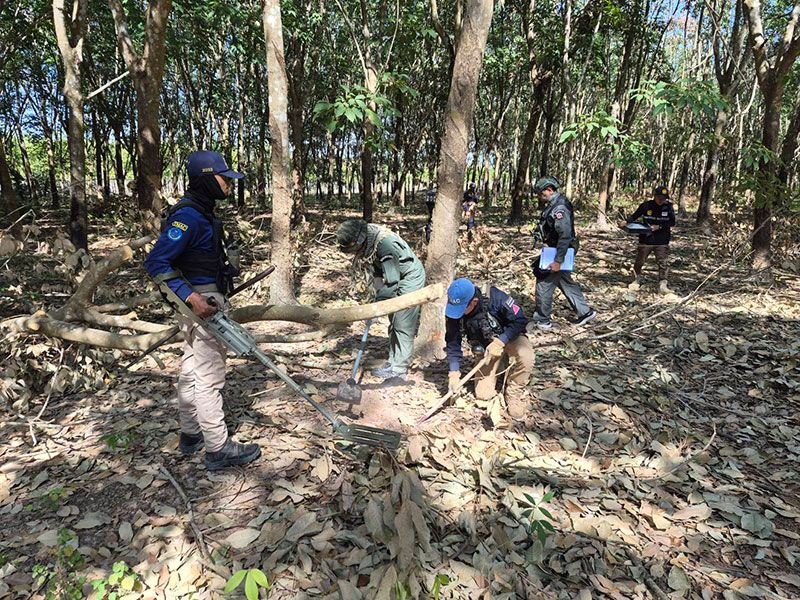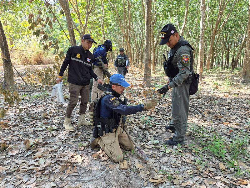 6 มกราคม 2569 ร.ต.อ.เจริญชัย มั่นใจ รองสารวัตรสืบสวน กองกำกับการสืบสวน ตำรวจภูธรจังหวัดบุรีรัมย์ (รอง สว.กก.สืบสวน ภ.จว.บุรีรัมย์) หัวหน้าชุดหน่วยเก็บกู้วัตถุระเบิด (EOD) กก.สืบสวน ภ.จว.บุรีรัมย์ พร้อมด้วยเจ้าหน้าที่ตำรวจ EOD. ,เจ้าหน้าที่ศูนย์ปฏิบัติการทุ่นระเบิดแห่งชาติ TMAC สังกัดศูนย์บัญชาการทางทหาร กองบัญชาการกองทัพไทย , เจ้าหน้าที่ฝ่ายปกครองอำเภอบ้านกรวด ,ผู้นำชุมชน และชุดรักษาความปลอดภัยหมู่บ้าน หรือ ชรบ. ตำบลจันทบเพชร อ.บ้านกรวด จ.บุรีรัมย์