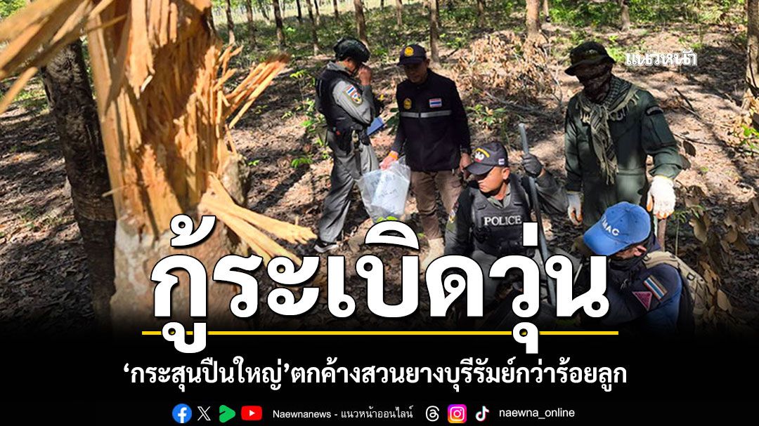 เจ้าหน้าที่ ชรบ.รายหนึ่งใน อ.บ้านกรวด จ.บุรีรัมย์ เผยที่สวนยางพาราของตนเองจำนวน 2 แห่ง มีกระสุนปืนใหญ่ตกถึง 5 ลูก ขณะเจ้าหน้าที่ EOD และ TMAC เร่งลงพื้นที่ตรวจสอบและเก็บกู้ เผยเบื้องต้นส่วนใหญ่พบตกในพื้นที่เกษตรกรรมมากกว่า 100 ลูก และในจำนวนนี้มี 5 ลูก ยังไม่ระเบิด ซึ่งเจ้าหน้าที่จะได้ดำเนินการจัดทำลายในขั้นตอนต่อไป เพื่อเร่งคืนความปลอดภัยให้กับชาวบ้านในพื้นที่แนวชายแดน