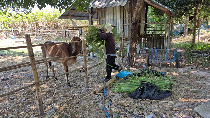 เกษตรกรเลี้ยงวัวในพื้นที่ อ.บ้านกรวด จ.บุรีรัมย์ ไม่มั่นใจสถานการณ์ชายแดนไทย-กัมพูชา หวั่นเกิดการสู้รบรอบ 3 ขึ้นอีก รีบเกี่ยวหญ้าสดมาเป็นอาหารวัวเพื่อบำรุงร่างกาย หลังก่อนหน้านี้ร่วมเดือน วัวต้องทนกินแต่ฟางแห้งจนร่างกายซูบผอม