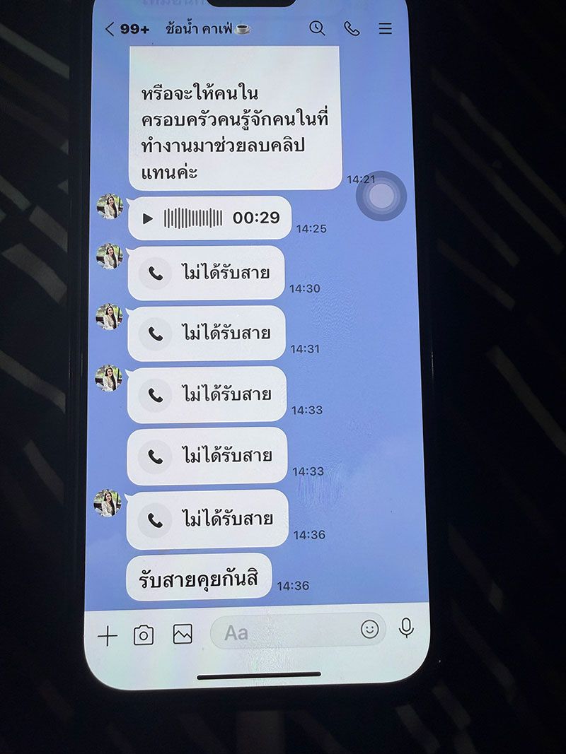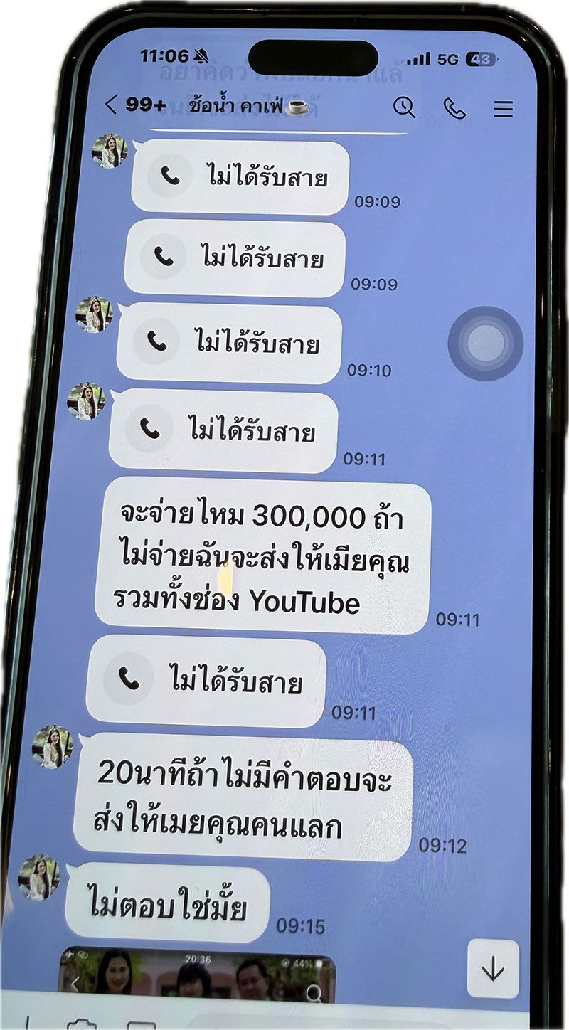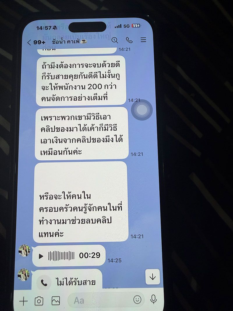 ล่าสุดแก๊งสแกมเมอร์เกือบหมดสำนักงานทักไลน์มาหาขู่นายชายต่างๆ นานา บอกว่าคุยกันดีๆ เงินไม่กี่แสนแลกกับอนาคตของพี่ อยากให้จบเร็วหรืออย่างไรก็รีบตอบมา จะส่งคลิปให้คนเมืองอุดรรู้กันทั้งเมือง