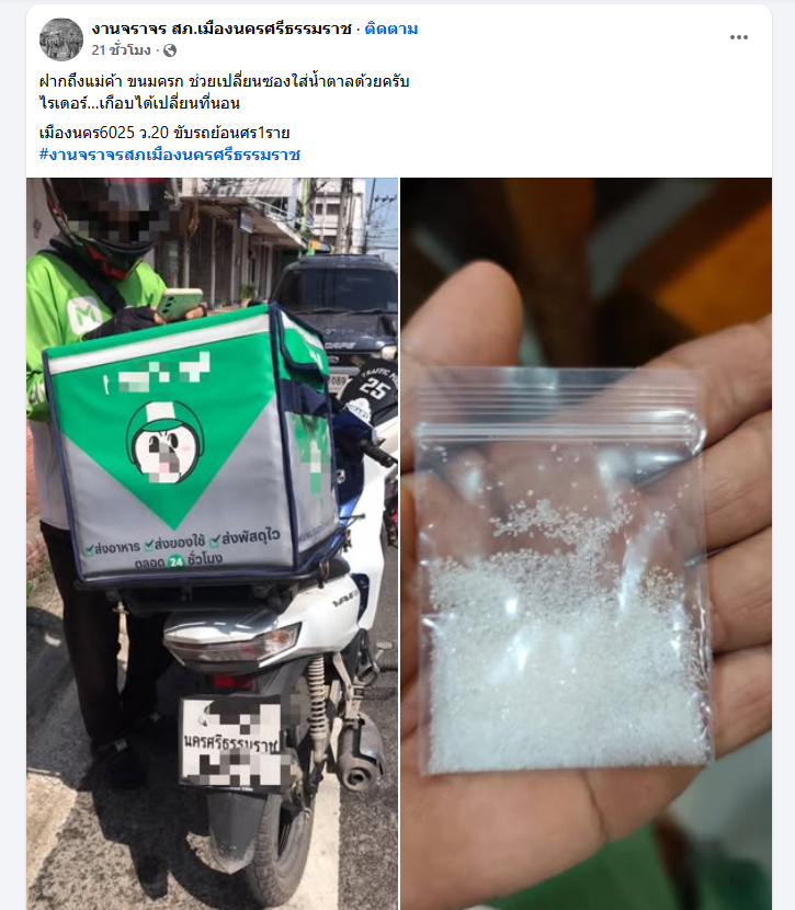 ทางเพจงานจราจรฯ ได้โพสต์ภาพพร้อมแคปชันสุดขำขันเพื่อเตือนสติทั้งไรเดอร์และร้านค้า ระบุว่า "ฝากถึงแม่ค้า ขนมครก ช่วยเปลี่ยนซองใส่น้ำตาลด้วยครับ ไรเดอร์…เกือบได้เปลี่ยนที่นอน"