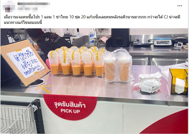 เรื่องราวเกิดขึ้นในกลุ่มรีวิวร้านสะดวกซื้อ เมื่อลูกค้าท่านหนึ่งโพสต์ภาพพร้อมข้อความระบุว่า ตนเองตั้งใจไปซื้อชาไทยโปรโมชัน "1 แถม 1" แต่กลับต้องเจอกับคิวก่อนหน้าที่สั่งรวดเดียว 10 ชุด รวมทั้งหมด 20 แก้ว ส่งผลให้แถวหยุดชะงักและคนข้างหลังต้องรอนานกว่าปกติ พร้อมตั้งคำถามถึงร้านว่า "ควรมีแนวทางแก้ไขหรือไม่?"