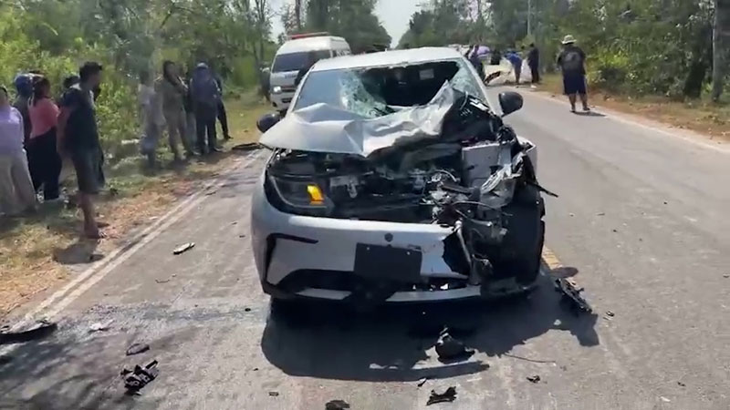 สอบถามเบื้องต้นขณะเกิดเหตุ ด.ญ.ระวินพร ขี่รถจักรยานยนต์ โดยมี ด.ญ.ศรีประไพ และด.ญ.กนกวรรณ ซ้อนท้ายมา จากทิศทาง อ.บ้านแหลม ส่วนรถยนต์เก๋ง BYD มีนายกัมปนาท ขับขี่สวนทางมุ่งหน้าเข้า อ.บ้านแหลม และเมื่อมาถึงที่เกิดเหตุเกิดการชนแบบประสานงาขึ้น ทำให้ฝ่ายผู้ขับขี่ซ้อนท้ายรถจักรยานยนต์เสียชีวิตทั้ง 3 ราย ส่วนผู้ขับขี่รถยนต์และผู้โดยสาร รวม 2 รายไม่ได้รับบาดเจ็บ ขณะเกิดเหตุไม่มีผู้เห็นเหตุการณ์