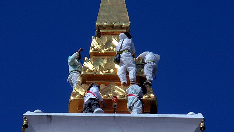 ต่อมาก็มีกลุ่มกัลยาณมิตร และศิลปิน ดารา นักร้อง อาสาโหนสลิงทำความสะอาดองค์พระธาตุพนม เช่น บิลลี่ โอแกน นักร้องแนวร็อกยุคปี 90 ก็เสริมบุญบารมีล้างองค์พระธาตุติดต่อกันมาแล้วถึง 3 ปี ขณะที่ โตโน่ ภาคิน เพิ่งเข้าร่วมเป็นปีแรก