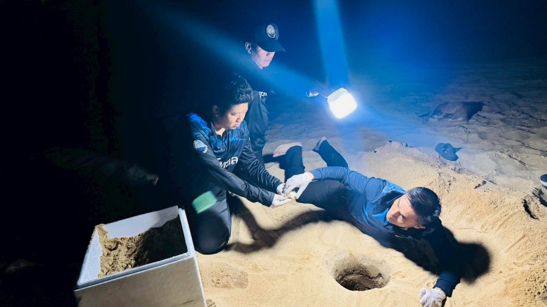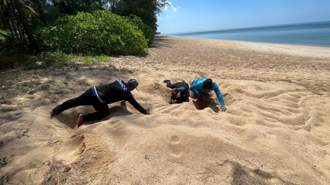 สทช.6 พบเต่ามะเฟืองวางไข่ 105 ฟอง ณ หาดทุ่งดาบ จ.พังงา เจ้าหน้าที่เร่งย้ายจุดฟักรับขวัญลูกเต่า