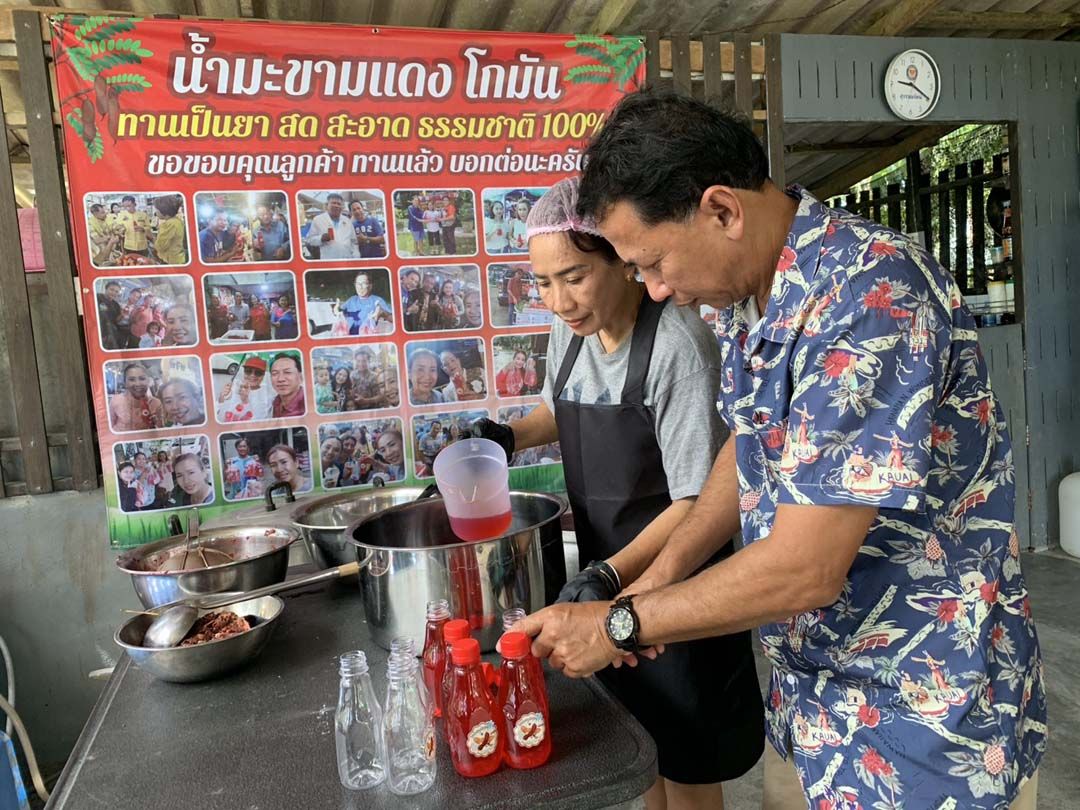 เกษตรกรจึงตัดสินใจปลูกโดยใช้เวลาประมาณ 3 ปี ก็เริ่มเก็บฝักมะขามแดงมาทำน้ำมะขามสด และเมื่อมะขามแดงอายุ 5 - 6 ปี มีผลผลิตมากขึ้น จนสามารถเก็บได้สัปดาห์ละ 200 - 300 กิโลกรัม จึงนำมาทำน้ำมะขามแดง และไวน์มะขามแดง ขาย ให้รสชาติเปรี้ยวนำ หอม อร่อย กลมกล่อม เน้นหวานน้อย น้ำตาลแค่ 7% เพื่อตอบโจทย์กลุ่มคนรักสุขภาพ ไม่ใส่สี ไม่ใช้สารกันบูด เก็บไว้ในตู้เย็นได้นาน 15 วัน