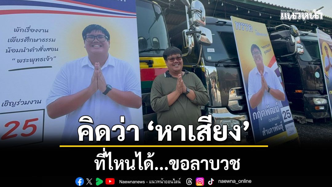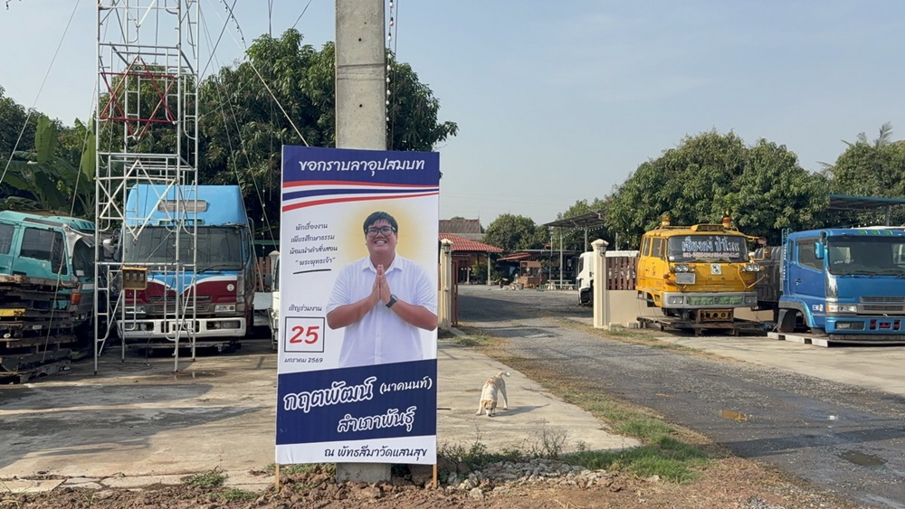 ชาวบ้านพากันจ้องตาเขม็ง! นึกว่าเขตนี้มีผู้สมัครคนใหม่ ที่ไหนได้เป็นป้ายงานอุปสมบทสุดแนวของหนุ่มเจ้าของร้านเชียงกงเมืองอ่างทอง อาศัยช่วงกระแสเลือกตั้งฟีเวอร์ เนรมิตป้ายบอกบุญเลียนแบบป้ายหาเสียง ส.ส. หวังให้คนจำง่ายจำแม่น มาพร้อมคำขวัญสุดจี๊ด "พรรคเดียวในเวลานี้ ภะคะวะโต" ทำเอาฮือฮาไปทั้งตำบลป่าโมก เจ้าตัวเผยอยากสร้างสีสันให้คนจดจำวันเข้าสู่ร่มกาสาวพัสตร์ 25 มกราคมนี้