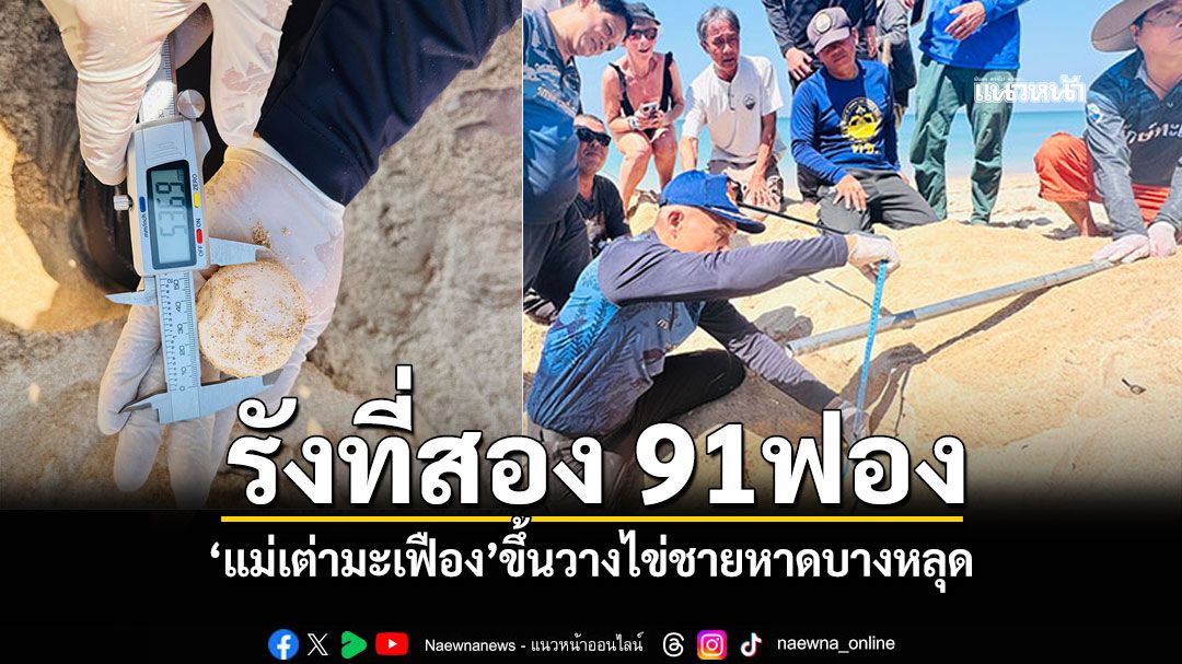 แม่เต่ามะเฟืองขึ้นวางไข่ ชายหาดบางหลุด รังที่สอง จำนวน 91ฟอง
