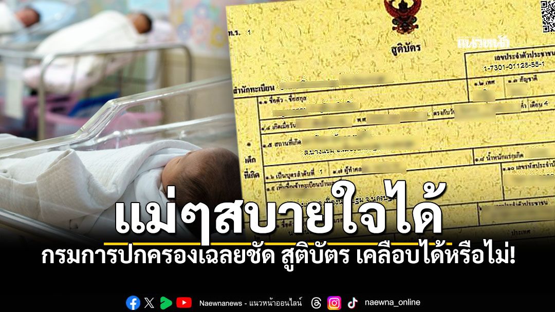 กรมปกครองยัน! สูติบัตรเคลือบพลาสติกได้ ไม่เป็นโมฆะ ใช้ทำธุรกรรมได้ปกติ นายทะเบียนมีวิธีแก้