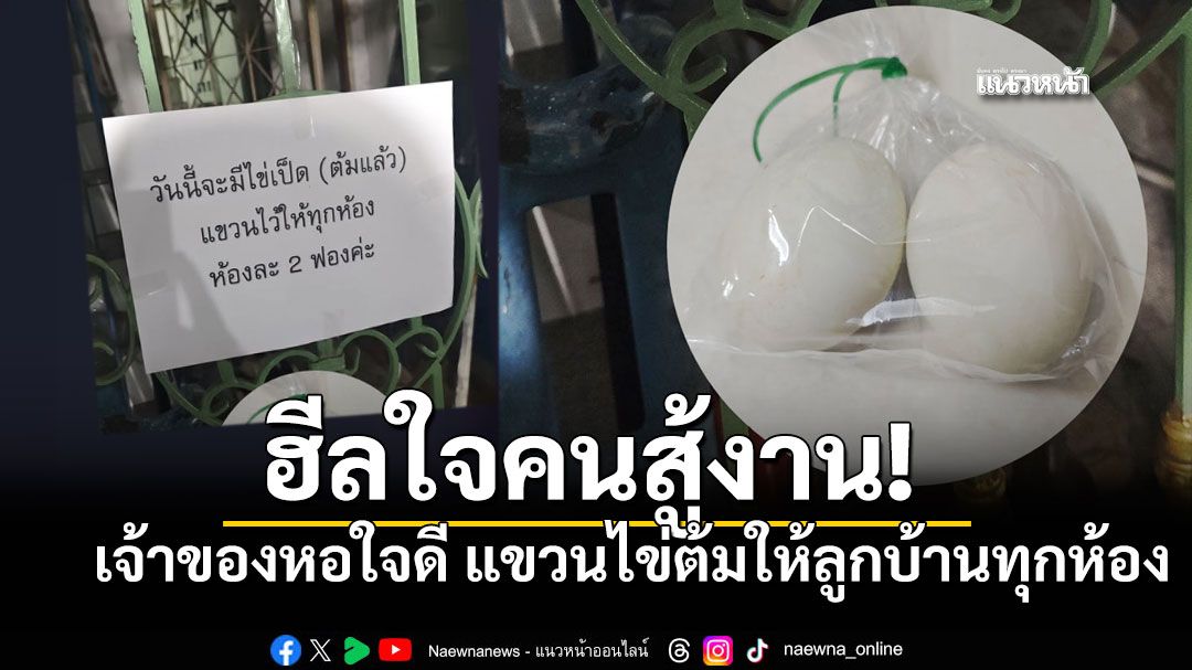 เรื่องราวอบอุ่นหัวใจ จากเจ้าของหอพักผู้ใจดี โดยผู้ใช้เฟซบุ๊กชื่อว่า " ประสิทธิ์ กิ่งบุตรโคตร " เผยภาพป้ายที่มีข้อความติดไว้ว่า "วันนี้จะมีไข่เป็ด (ต้มแล้ว) แขวนไว้ให้ทุกห้อง ห้องละ 2 ฟองค่ะ"