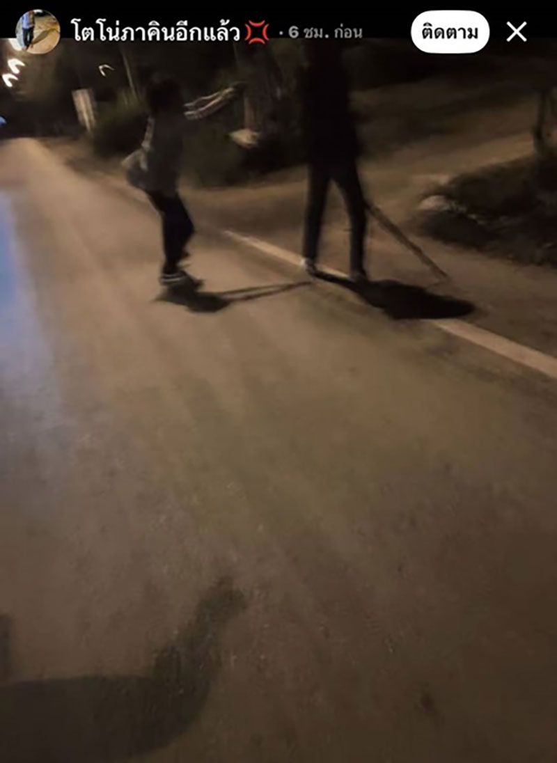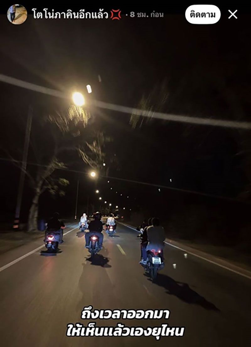 จากการสอบถามนายภพ และนายเกมอายุ 17 ปี (นามสมติ) ต่างยืนยันว่าพวกตนไม่เคยมีเรื่องทะเลาะเบาะแว้งกับใคร และไม่รู้จักกับวัยรุ่นกลุ่มนี้ แต่เห็นอยู่ในเฟซบุ๊ก ที่ใช้ชื่อ “โตโน่ภาคินอีกแล้ว” ลงสตอรี่ท้าทายว่า”ถึงเวลาออกมาให้เห็นแล้วเองอยู่ไหน” โดยมีภาพรถจักรยานยนต์แล่นอยู่กลางถนน นอกจากนี้ในเฟซบุ๊กเดียวกัน ยังเผยแพร่ภาพตอนที่เข้าไปบุกบ้านนางสุริยันต์ด้วย รวมทั้งคลิปกล้องวงจรปิดที่แก๊งวัยรุ่นกลุ่มนี้ญกโขยงมาหาเรื่องในหมู่บ้านเป็นหลักฐาน