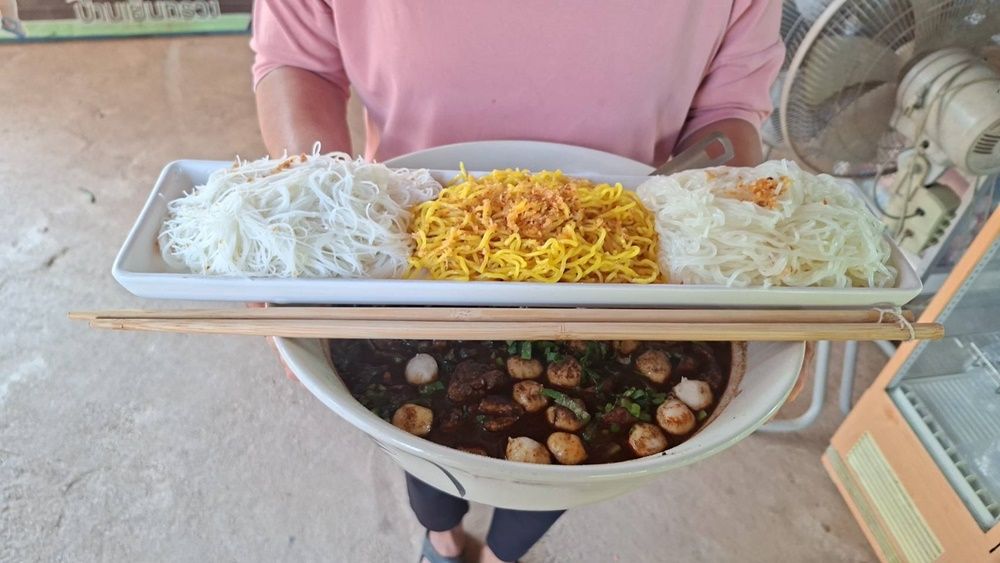 ชาวอุตรดิตถ์แห่ชิม! ร้าน "น้อง ณภัทร์ บ้านเย็นทรวง" พลิกโฉมก๋วยเตี๋ยวเรือโบราณ จัดชามยักษ์เบิ้ม 30 เซนติเมตร เสิร์ฟพร้อมกัน 3 เส้นเอาใจคนหลายใจ น้ำซุปสูตรเด็ดหอม "มะแขว่น" สมุนไพรเหนือแท้ๆ ป้าหลิ่งเจ้าของร้านเผยไอเดียจากลูกหลาน สู่เมนูฮิตที่ใครมา อ.พิชัย เป็นต้องแวะ