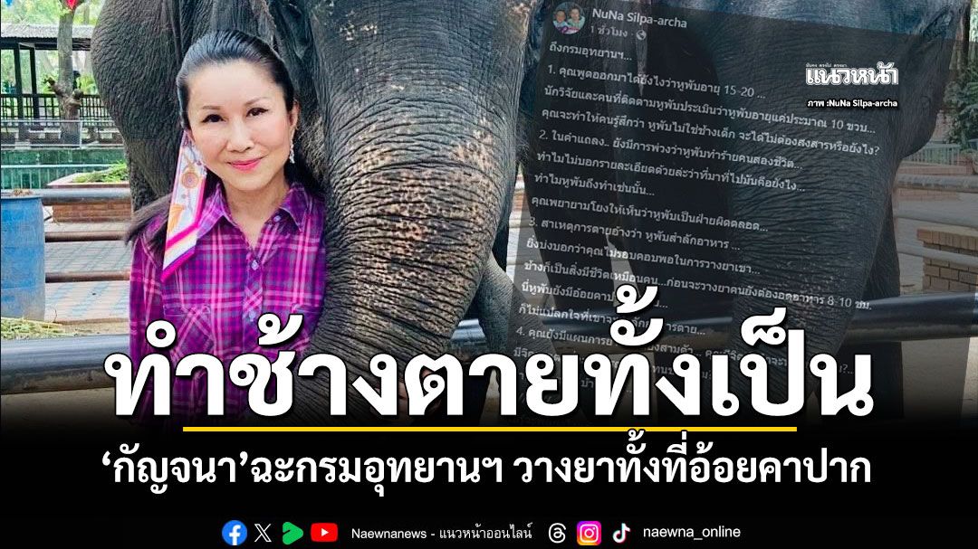 ข่าวเพิ่มเติม : ช้างป่าวัย16เจ้าหูพับ ถูกยิงยาซึมล้มกลางทาง หนูนาโพสต์จุกขอพูดแทน คนทำต้องรับกรรม