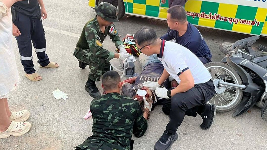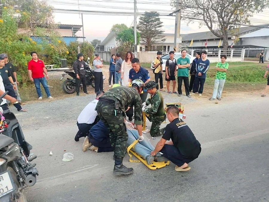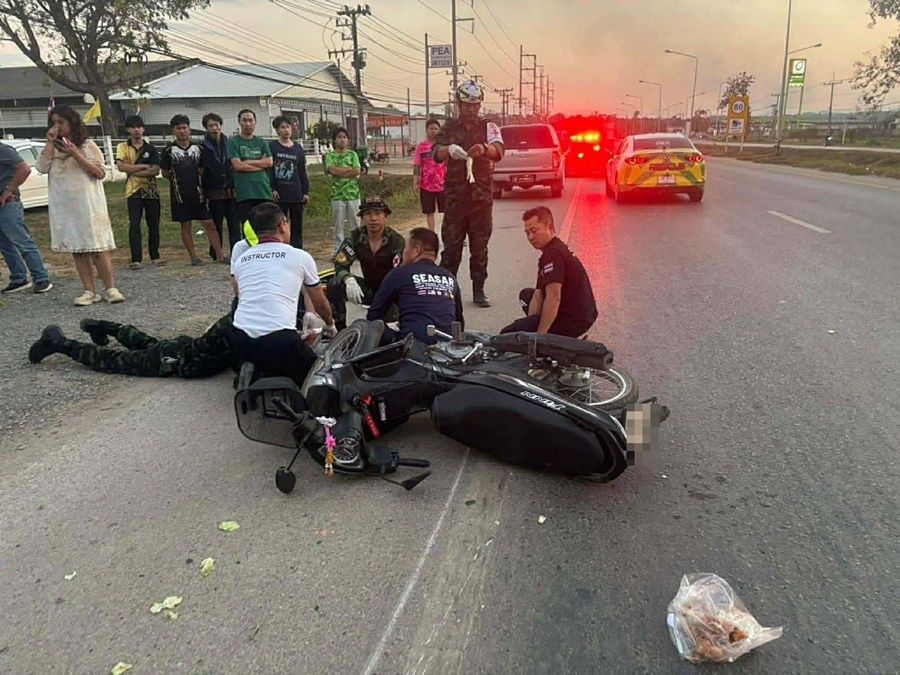 ทหารเป็นที่พึ่งของประชาชนทุกเมื่อ! ทีมครูฝึกแพทย์ทหาร รพ.ค่ายขุนเจืองธรรมิกราช มทบ.34 โชว์หัวใจหล่อจัด เจออุบัติเหตุ จยย.แฉลบเองล้มคว่ำกลางทาง มีคนเจ็บหนักไม่รู้สึกตัว 1 ราย รีบโดดลงรถกู้ชีพเบื้องต้นทันทีจนถึงมือหมอปลอดภัย ชาวบ้านแห่ชม "ฮีโร่นอกเครื่องแบบ" ตัวจริง