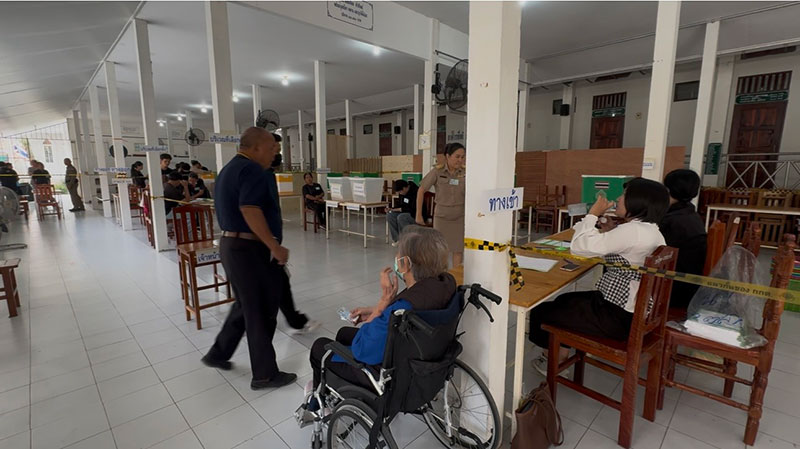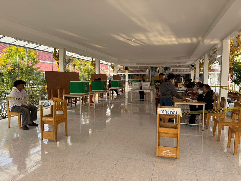 8 กุมภาพันธ์ 2569 ที่วัดศรีสวัสดิ์ หน่วยเลือกตั้งที่ 7 โรงอาหารวัดศรีสวัสดิ์ ตำบลตลาด อ.เมือง จ.มหาสารคาม มีประชาชนมารอใช้สิทธิออกเสียงเลือกตั้ง สส. และลงประชามติ ตั้งแต่ก่อนเวลา 08.00 น. ซึ่งมีทั้งประชาชนทั่วไป ผู้สูงอายุ และผู้พิการ ที่มีลูกหลาน ญาติพี่น้องพามาลงคะแนนใช้สิทธิออกเสียงเลือกตั้ง ต่างก็มาตรวจสอบรายชื่อและลำดับที่ที่บริเวณหน้าหน่วยเลือกตั้ง ก่อนที่จะต่อแถวเพื่อเตรียมลงคะแนน