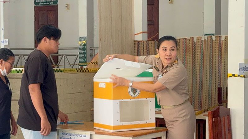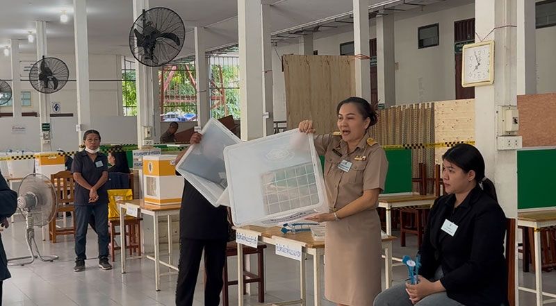 เมื่อถึงเวลา 08.00 น. คณะกรรมการประจำหน่วยเลือกตั้ง ได้ประกาศว่า ได้เวลา 08.00 น.แล้ว ขอเปิดการลงคะแนนใช้สิทธิออกเสียงเลือกตั้ง และลงประชามติ ประชาชนต่างก็ทยอยเดินทางเข้าไปใช้สิทธิ ซึ่งเมื่อเลือก สส.หย่อนบัตรสีเขียว และสีชมพูแล้ว ต้องมีการแสดงบัตรประชาชนอีกครั้ง เพื่อตรวจสอบรายชื่อ และรับบัตรลงประชามติ เข้าคูหากากบาท และหย่อนบัตรประชามติลงหีบบัตร ถือเป็นการเสร็จขั้นตอนของการเลือกตั้ง สส. และออกเสียงลงประชามติ